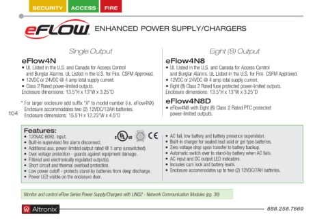 Enclosure accommodates two (2) 12VDC/12AH batteries . • eFlow4N8 with Eight (8) Class 2 Rated PTC protected
