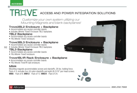 92 • Includes Altronix Trove3 Enclosure TBL3 backplane .